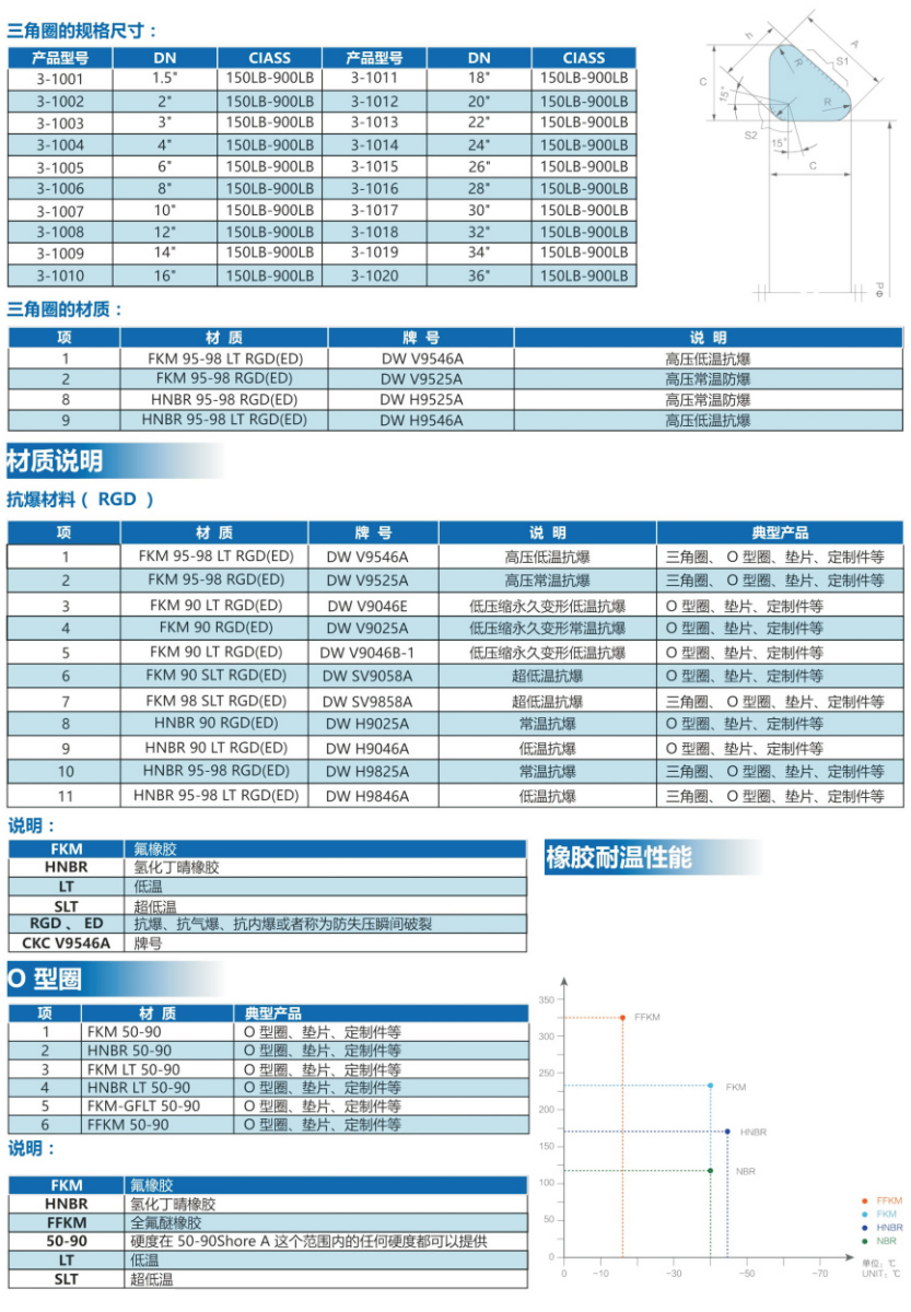 涉及材料∶主要涉及Viton、Viton AED、 HNBR、HNBR-AED、 Viton GLT、 Viton GLT-AED、 HNBR-LT、HNBR-LT-AED、 AFLAS、FFKM等材料,產(chǎn)品包括O形圈,三角圈及各類異形件。